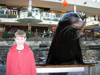 and we went to the Sea Lion show, and the kids each got pix with the sea lions. Natalie even got a kiss!